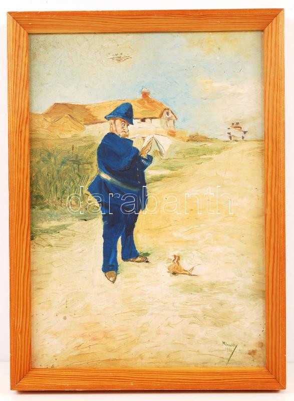 Leírás: Németh jelzéssel: Bűneset. Olaj, farost, keretben, 33×22 cm