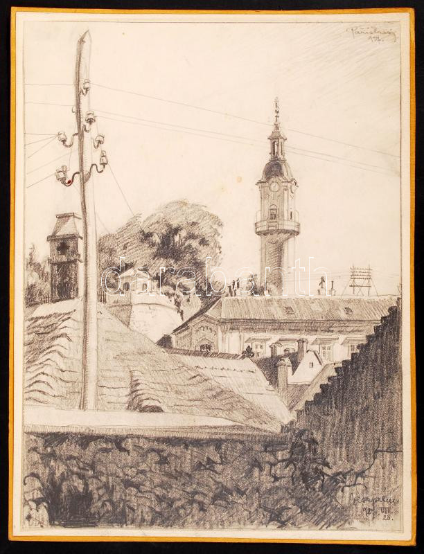 Leírás: Páris Erzsébet, (1887-?): Veszprém. Ceruza, papír, jelzett, 26×19 cm