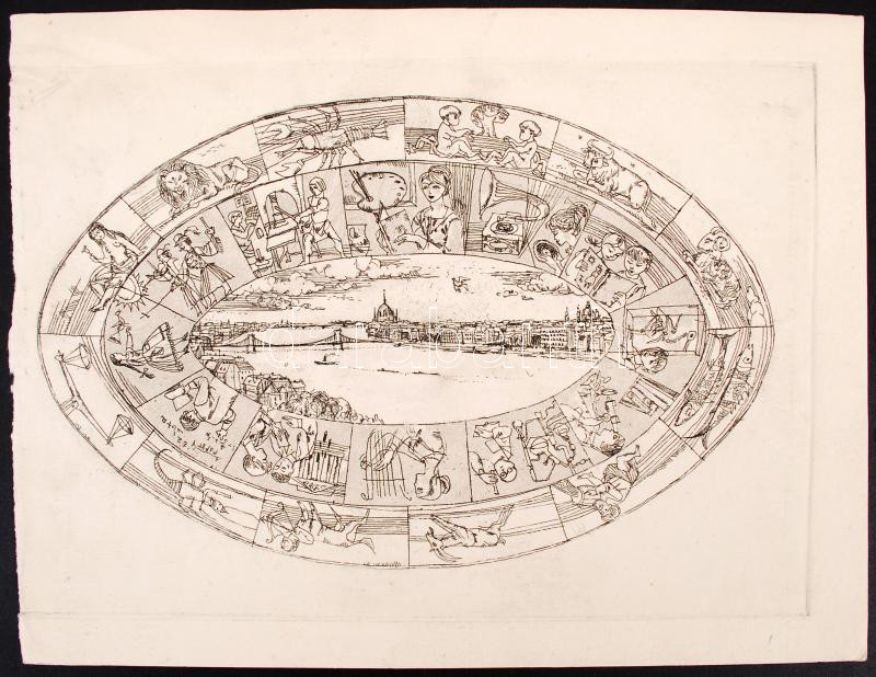 Leírás: Würtz Ádám (1927-1994): Budapest. Rézkarc, papír, jelzés a karcon, enyhén gyűrött, 12×18 cm