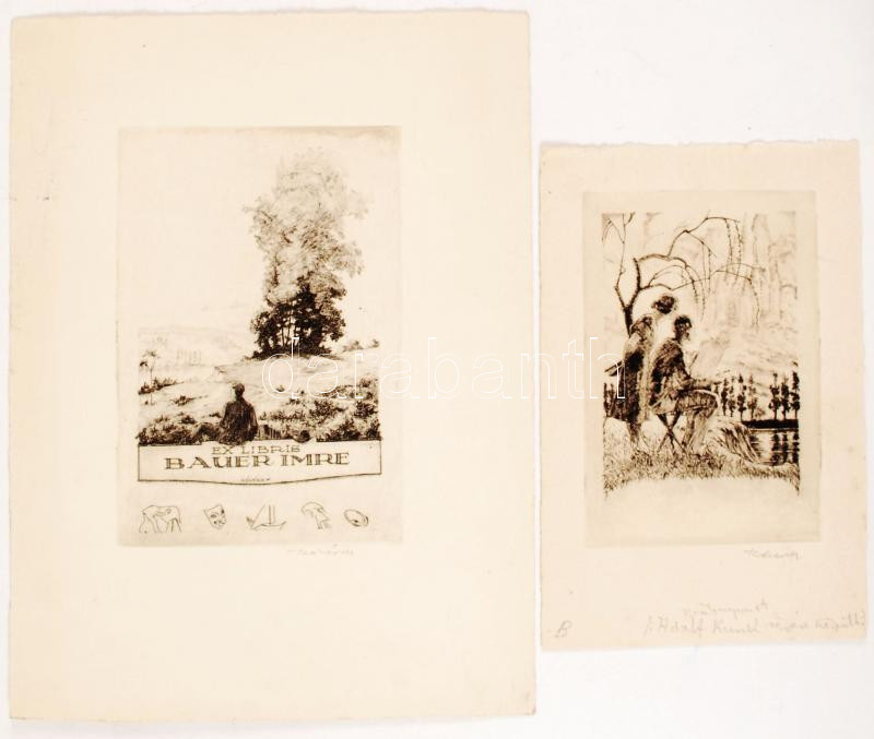 cca 1930 Révész Kornél (1885-1944): 2 db ex libris. Rézkarc, papír, je... https://www.darabanth.com/hu/207-Gyorsarveres/207.0/Festmeny-mutargy-papirregiseg-egyeb/Muveszeti~600001/cca-1930-Revesz-Kornel-1885-1944-2-db-ex-libris-Rezkarc-papir-jelzett-12x18-cm-19x26-cm~II842560