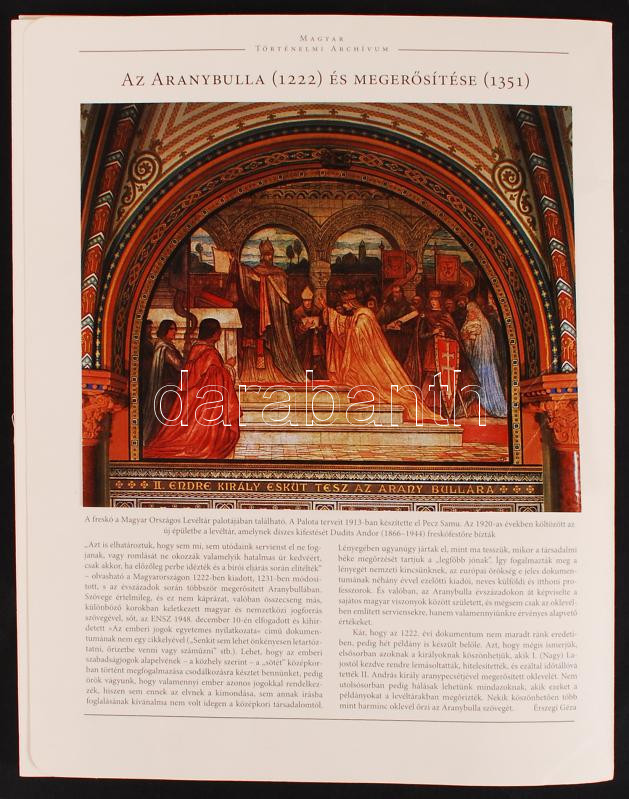 Az Aranybulla (1222) és megerősítése (1351), Magyar Történelmi Archívu... https://www.darabanth.com/hu/207-Gyorsarveres/207.0/Festmeny-mutargy-papirregiseg-egyeb/Nyomtatvanyok~600026/Az-Aranybulla-1222-es-megerositese-1351-Magyar-Tortenelmi-Archivum-szines-masolat-es~II827117