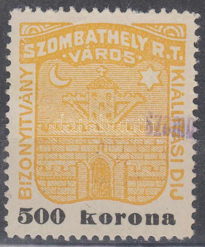 Leírás: 1922 Szombathely 500K helyi illetékbélyeg