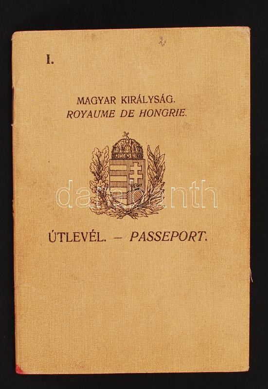 1930 Hungar... https://www.darabanth.com/hu/207-Gyorsarveres/207.0/Festmeny-mutargy-papirregiseg-egyeb/Okmanyok~600015/1930-Magyar-Kiralysag-altal-kiallitott-fenykepes-utlevel--3Cbr3E1930-Hungarian-passport~II844337