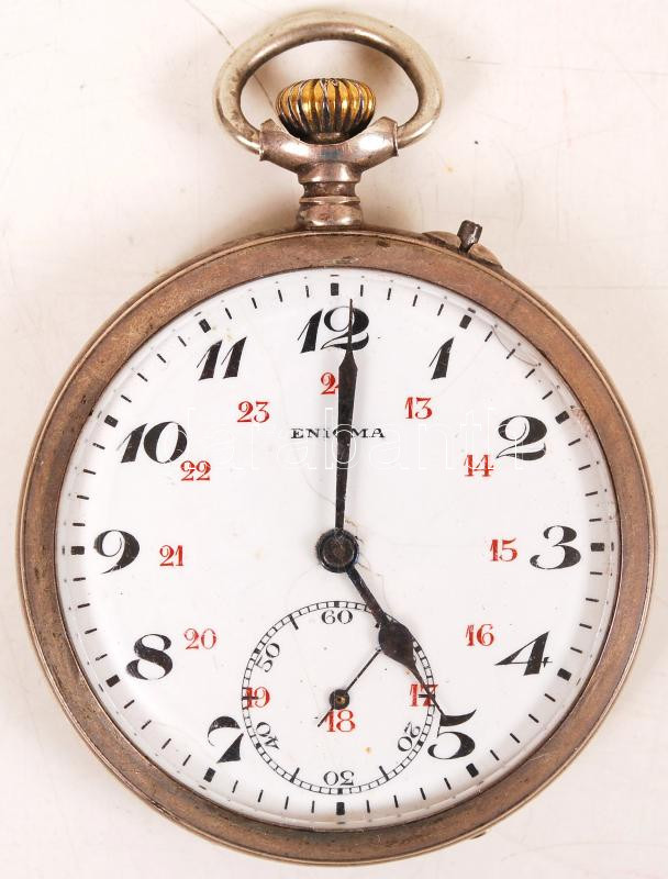 Ezüst Enigma másodperc mutatós zsebóra, működik, jelzett, jó állapotba... https://www.darabanth.com/hu/207-Gyorsarveres/207.0/Festmeny-mutargy-papirregiseg-egyeb/Orak~600009/Ezust-Enigma-masodperc-mutatos-zsebora-mukodik-jelzett-jo-allapotban~II840926