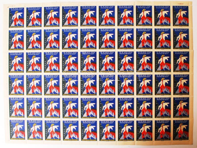 "Te is add oda a rongyaidat", teljes fogazott 6x10-es ív, "Pannonia Bélyeg Egyesület" teljes fogazatlan 9x10-es ív, "Magyar Piaristák 1642-1942" fogazatlan 10x10-es ív