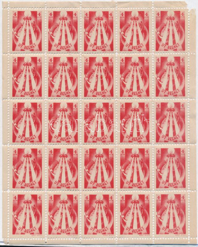 Leírás: Ut Regnet levélzáró 25-ös íve Bozó Gyula szignóval, benne nyomdai eltérésekkel