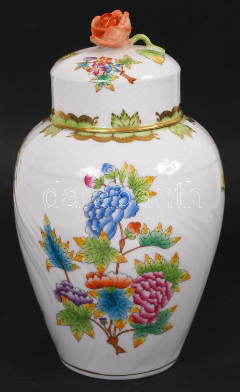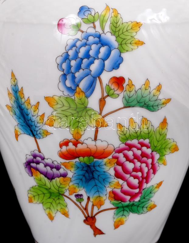 Leírás: Herendi Viktória mintás fedeles váza, kézzel festett, jelzett, hibátlan, m:18 cm