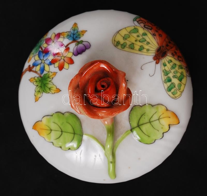 Herendi Viktória mintás fedeles váza, kézzel festett, jelzett, hibátla... https://www.darabanth.com/hu/207-Gyorsarveres/207.0/Festmeny-mutargy-papirregiseg-egyeb/Porcelan~600006/Herendi-Viktoria-mintas-fedeles-vaza-kezzel-festett-jelzett-hibatlan-m18-cm~II836141