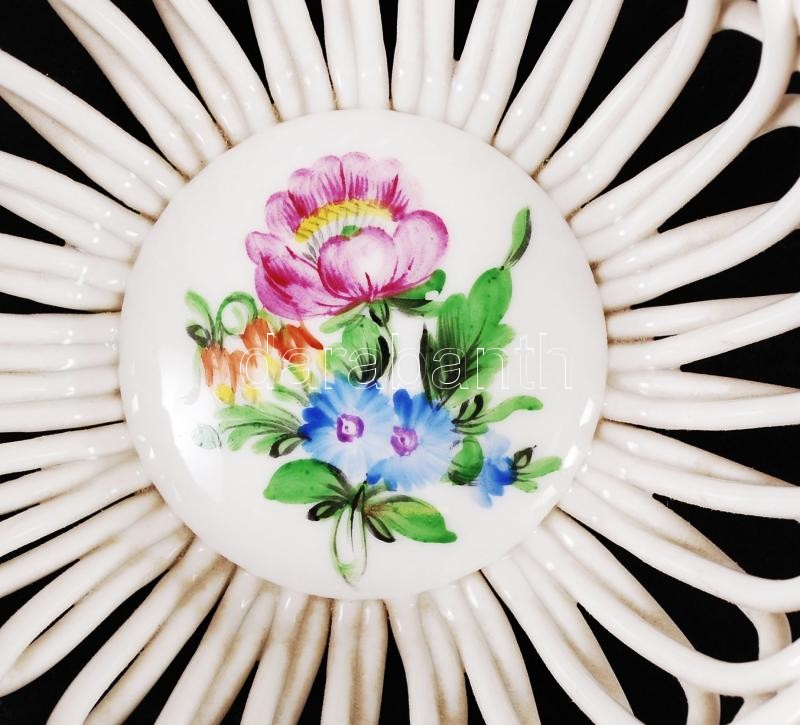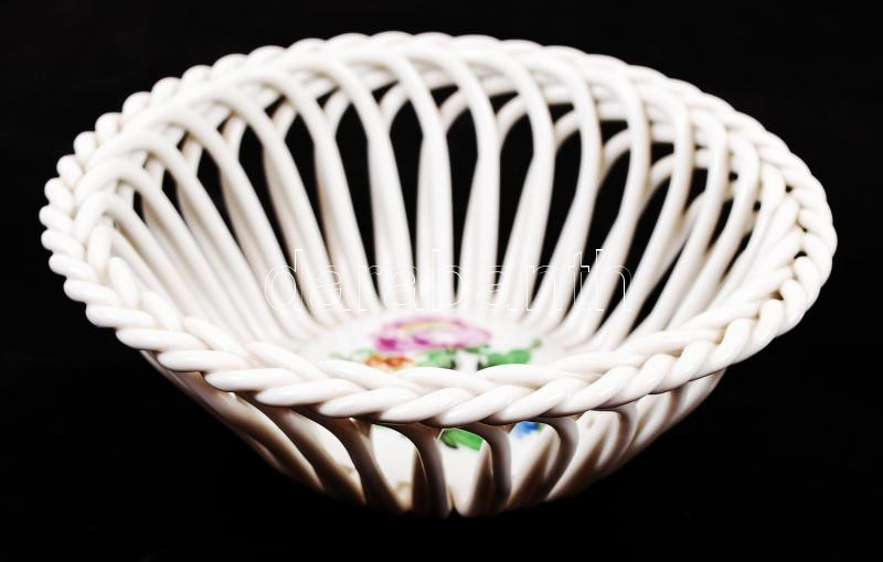Leírás: Herendi áttört kosárka, kézzel festett, virágokkal díszített, jelzett, hibátlan, d: 13 cm