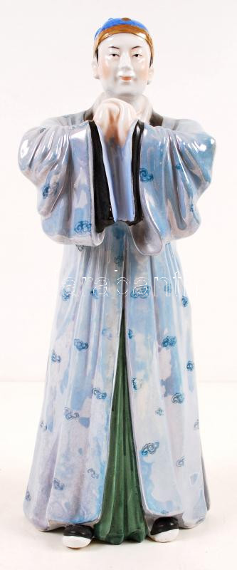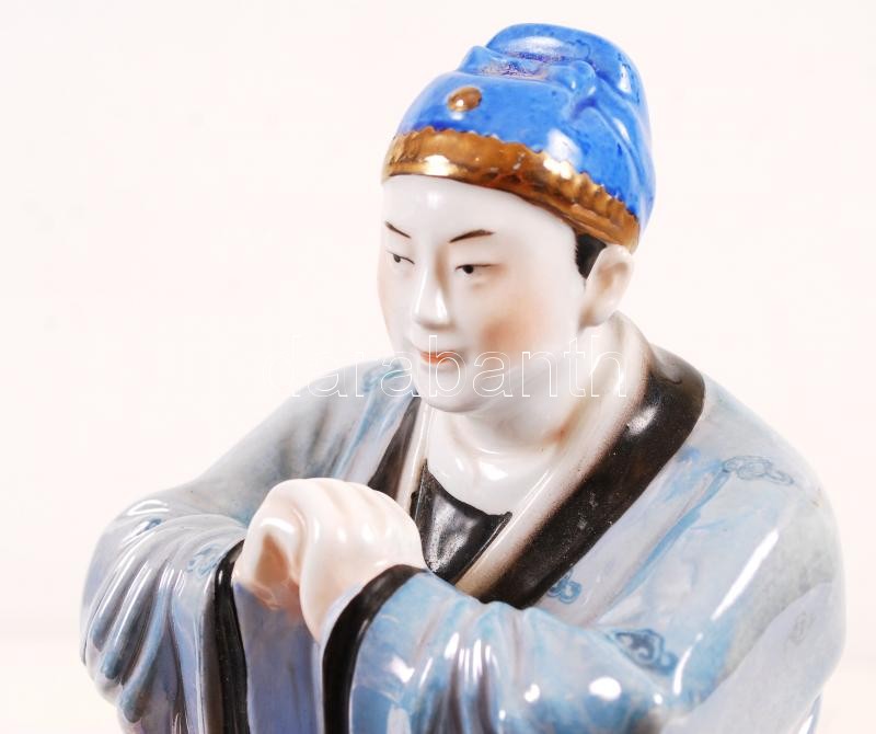 Leírás: Kínai figurális porcelán, kézzel festett, jelzés nélkül, alul kis repedéssel, m:34 cm