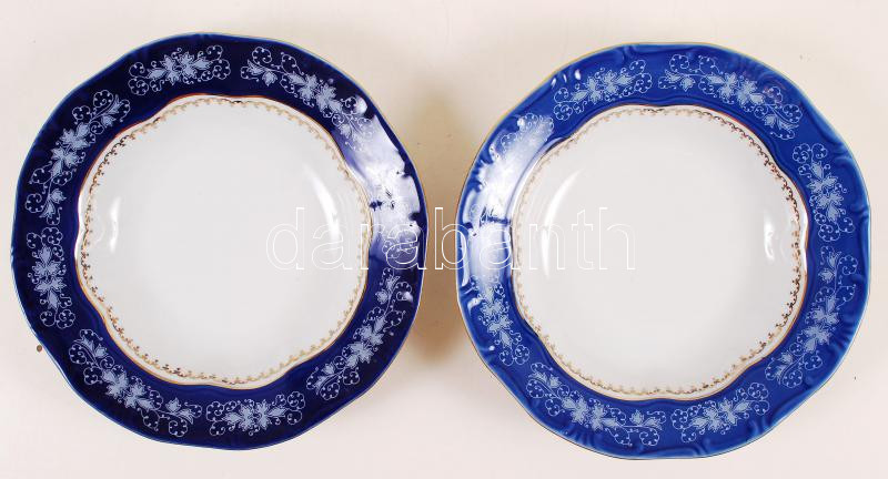 Leírás: Zsolnay Pompadour lapos és leveses tányér, kézzel festett, jelzett, hibátlan, d:23,5 és 24 cm