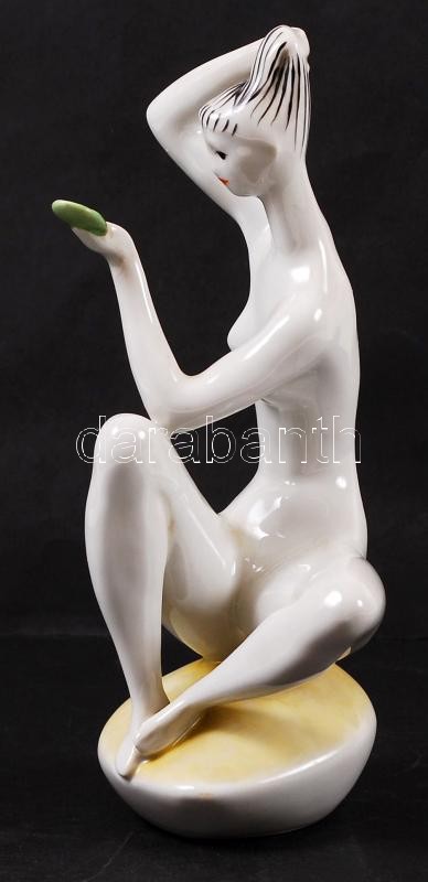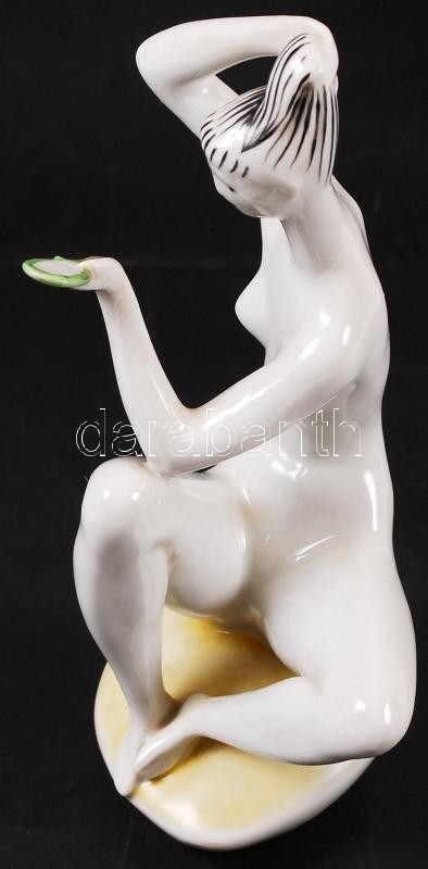 Leírás: Zsolnay tükrös akt, kézzel festett, jelzett, hibátlan, m:22 cm