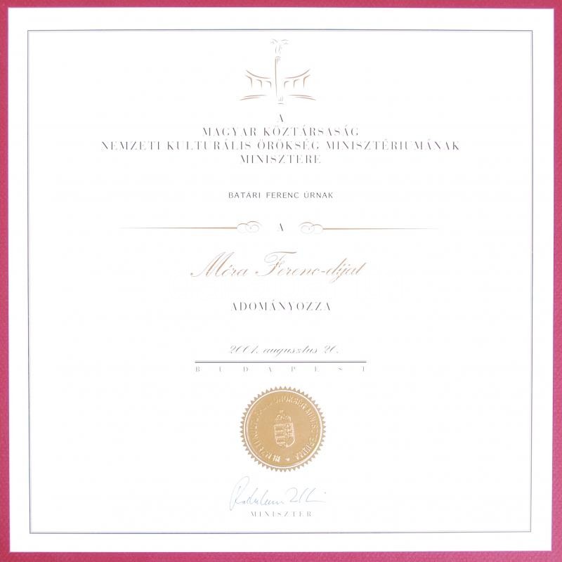 Hungary 2001. "Award of Móra Ferenc" Original box! Sign.: Palotás József (254.5g/80mm/Brass) State award, only 5 pieces annually! R!