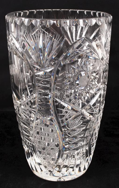 Leírás: Ólomkristály váza, csiszolt, hibátlan, hámozott, m:20 cm