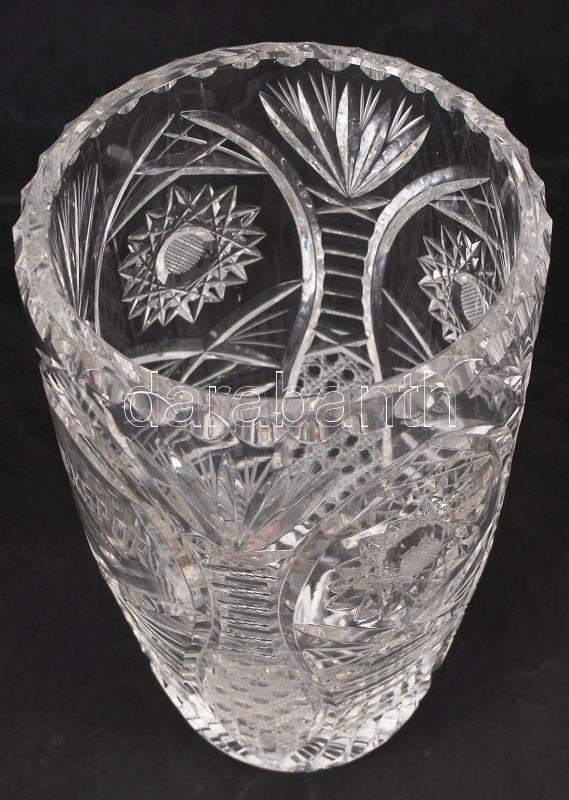 Ólomkristály váza, csiszolt, hibátlan, hámozott, m:20 cm https://www.darabanth.com/hu/207-Gyorsarveres/207.0/Festmeny-mutargy-papirregiseg-egyeb/Uvegtargyak~600007/Olomkristaly-vaza-csiszolt-hibatlan-hamozott-m20-cm~II840453