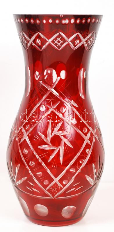 Rubinvörös kristály váza, többrétegű, csiszolt, hámozott, apró hibákka... https://www.darabanth.com/hu/207-Gyorsarveres/207.0/Festmeny-mutargy-papirregiseg-egyeb/Uvegtargyak~600007/Rubinvoros-kristaly-vaza-tobbretegu-csiszolt-hamozott-apro-hibakkal-m-27-cm~II839015