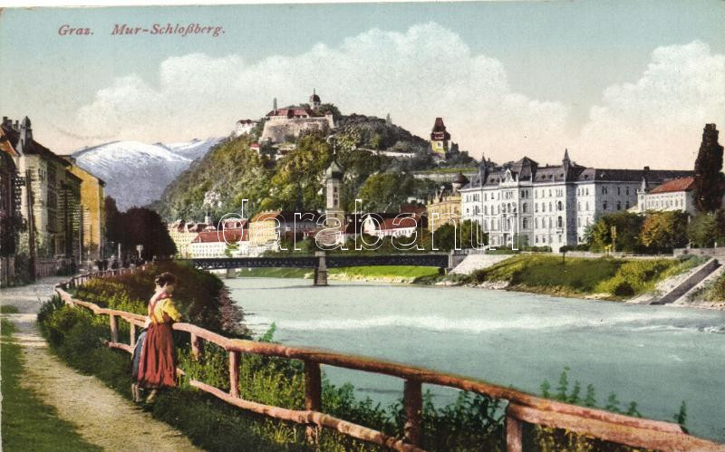 Graz Mur riverside, Schlossberg https://www.darabanth.com/hu/207-Gyorsarveres/207.0/Kepeslapok/Ausztria~600051/Graz-Mur-riverside-Schlossberg~II839586
