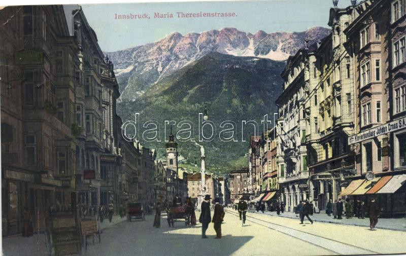 Innsbruck, Maria Theresienstrasse / street, shops (EK) https://www.darabanth.com/hu/207-Gyorsarveres/207.0/Kepeslapok/Ausztria~600051/Innsbruck-Maria-Theresienstrasse-street-shops-EK~II837615