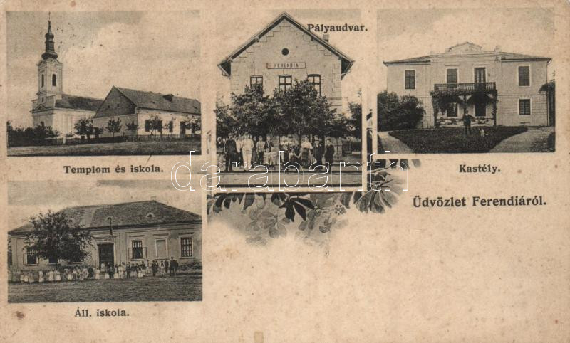 Ferendia, Vasútállomás, kastély; Dajkovits J. kiadása / railway statio... https://www.darabanth.com/hu/207-Gyorsarveres/207.0/Kepeslapok/Erdely~6/Ferendia-Vasutallomas-kastely-Dajkovits-J-kiadasa-railway-station-castle-floral-wet-da~II841850