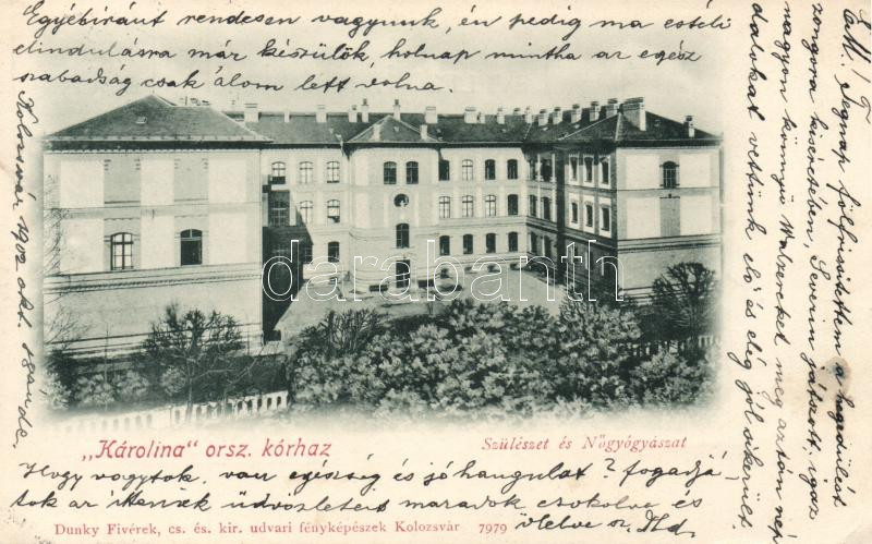 Kolozsvár, Karolina kórház / hospital (EK) https://www.darabanth.com/hu/207-Gyorsarveres/207.0/Kepeslapok/Erdely~6/Kolozsvar-Karolina-korhaz-hospital-EK~II837868
