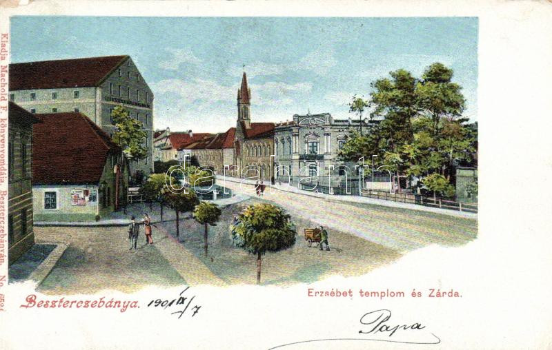 Leírás: Besztercebánya, Erzsébet templom, zárda / church, priory (small tear)