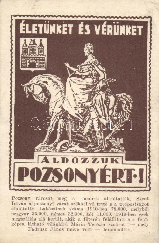 Leírás: Pozsony Mária Teréza szobor, irredenta / Maria Theresia statue, irredenta, s: Tary (fa)