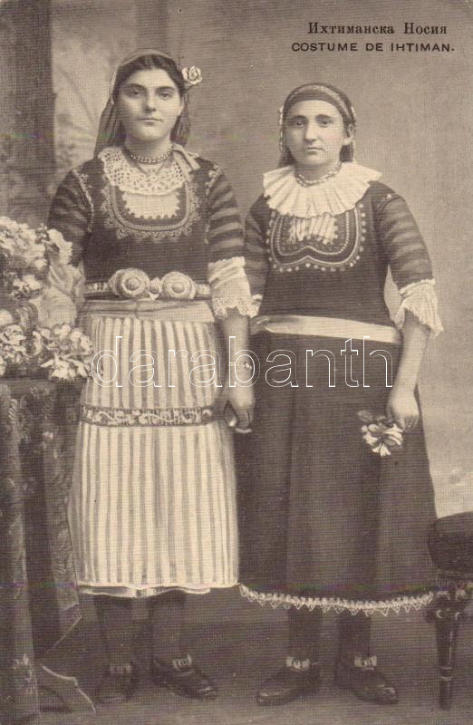 Bulgarian folklore, women in national costume from Ihtiman https://www.darabanth.com/hu/207-Gyorsarveres/207.0/Kepeslapok/Folklor~600080/Bulgarian-folklore-women-in-national-costume-from-Ihtiman~II588796