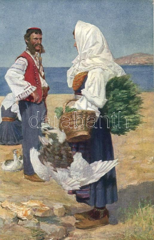 National costume from Zara, Croatian folklore serie XVII/2. https://www.darabanth.com/hu/207-Gyorsarveres/207.0/Kepeslapok/Folklor~600080/National-costume-from-Zara-Croatian-folklore-serie-XVII2~II835741