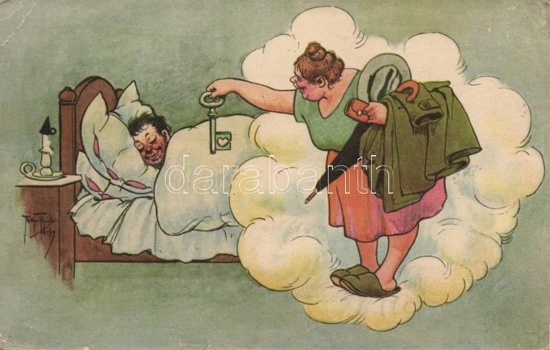 Husband and wife, humour s: Arthur Thiele (b) https://www.darabanth.com/hu/207-Gyorsarveres/207.0/Kepeslapok/Humor~600103/Husband-and-wife-humour-s-Arthur-Thiele-b~II837445