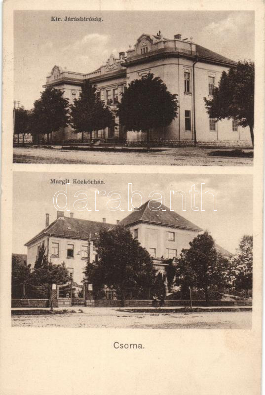 Csorna, Járásbíróság, közkórház https://www.darabanth.com/hu/207-Gyorsarveres/207.0/Kepeslapok/Magyarorszag~5/Csorna-Jarasbirosag-kozkorhaz~II819585