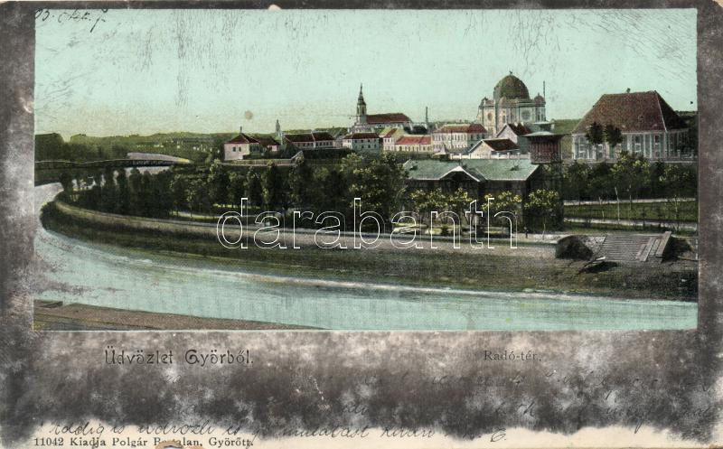 Győr, Radó tér, zsinagóga, Polgár Bertalan kiadása https://www.darabanth.com/hu/207-Gyorsarveres/207.0/Kepeslapok/Magyarorszag~5/Gyor-Rado-ter-zsinagoga-Polgar-Bertalan-kiadasa~II837511