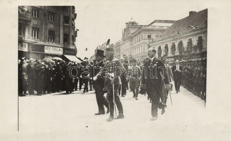 Nagykanizsa, A 20. honvéd gyalogezred emlékművének leleplezése, Krátky István, Kék Csillag Divatház, kávéház, Fischer és Perlsz és Beck boltja, szálloda photo (gluemark)