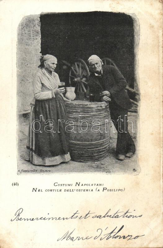 Naples, Napoli; Posilipo, Folklore, Courtyard of the tavern (fl) https://www.darabanth.com/hu/207-Gyorsarveres/207.0/Kepeslapok/Olaszorszag~600130/Naples-Napoli-Posilipo-Folklore-Courtyard-of-the-tavern-fl~II844212