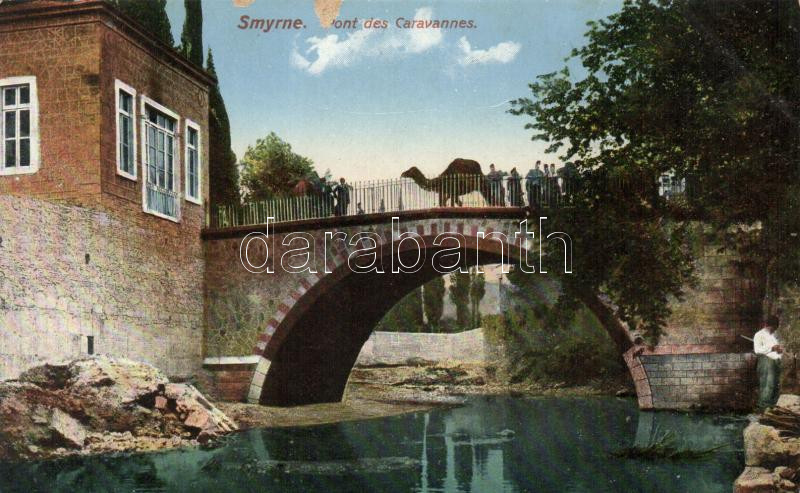 Izmir, Smyrne; bridge, caravan (small tear) https://www.darabanth.com/hu/207-Gyorsarveres/207.0/Kepeslapok/Torokorszag~600165/Izmir-Smyrne-bridge-caravan-small-tear~II837900