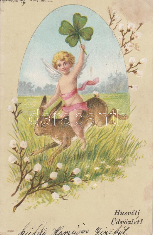 Easter, angel, rabbit, Emb. litho (fl) https://www.darabanth.com/hu/207-Gyorsarveres/207.0/Kepeslapok/Udvozlolap~600123/Easter-angel-rabbit-Emb-litho-fl~II731298