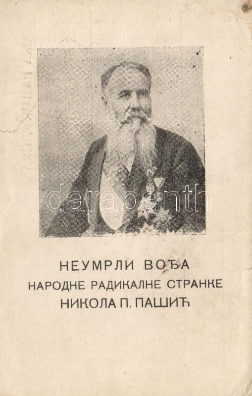 Nikola P. Pasic (small tear) https://www.darabanth.com/hu/207-Gyorsarveres/207.0/Kepeslapok/Uralkodo-Politikus~600101/Nikola-P-Pasic-small-tear~II837072