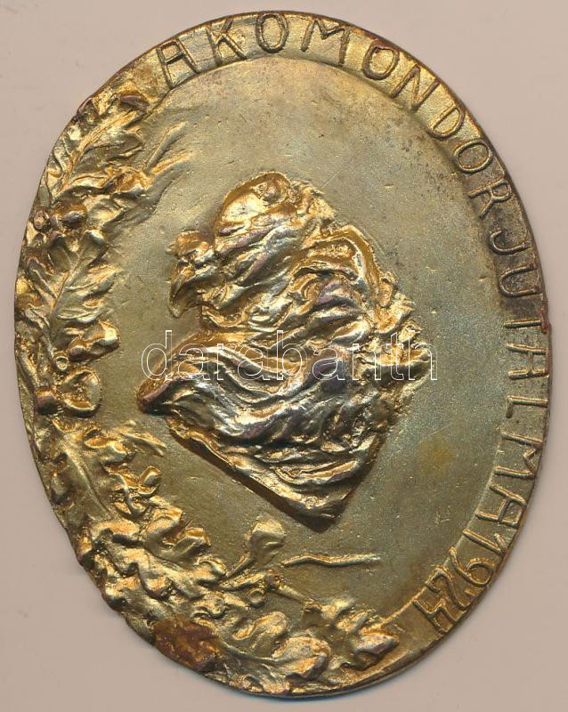 Leírás: 1924. "A komondor jutalma" aranyozott Cu plakett, jelzés nélkül (65×80mm) T:2-