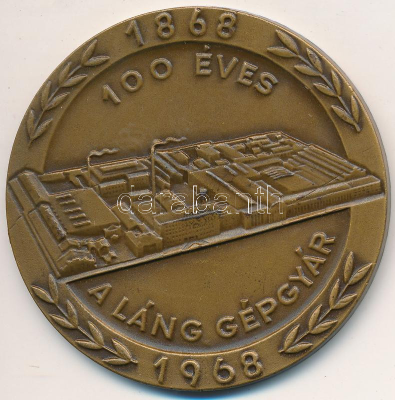 Leírás: 1968. "100 éves a Láng Gépgyár" emlékérem (60mm) T:2