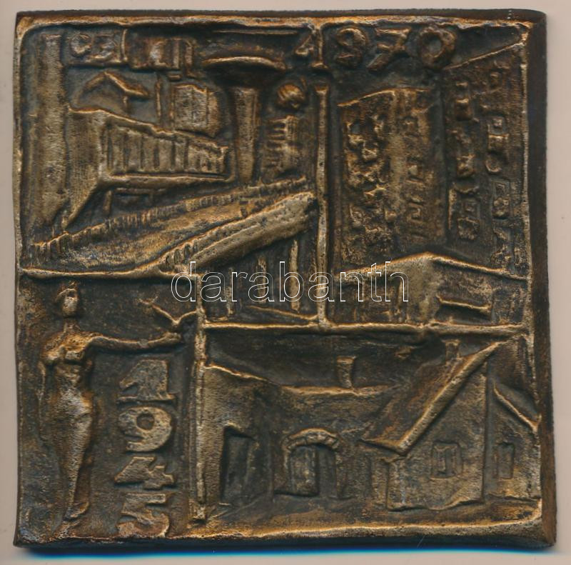 1970. "1945-1970" jubileumi Br emlékplakett (87x87mm) T:2 https://www.darabanth.com/hu/207-Gyorsarveres/207.0/Numizmatika/Magyar-emlekveretek~200011/1970-1945-1970-jubileumi-Br-emlekplakett-87x87mm-T2~II839168