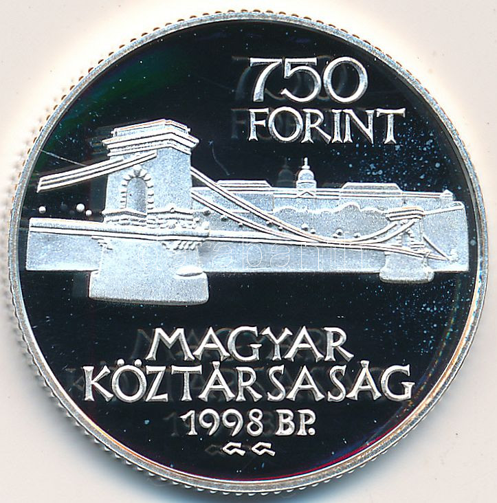 Leírás: 1998. 750Ft Ag "Budapest egyesítésének 125. évfordulója" tanúsítvánnyal eredeti dísztokban T:PP