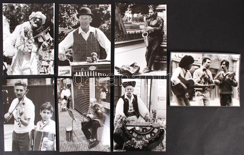Leírás: cca 1980-1990 Utcazenészek Budapest belvárosában, 6 db életkép, 13x18 cm