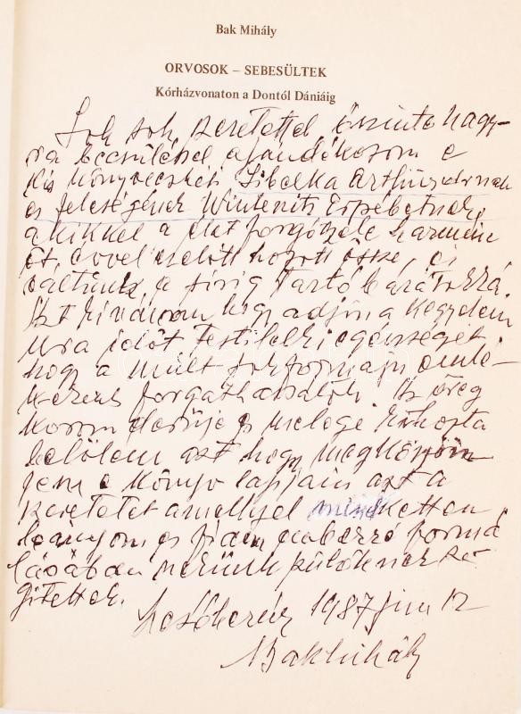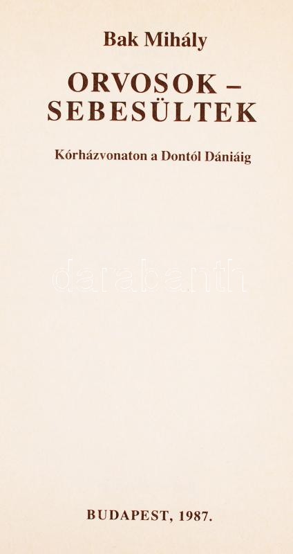 Bak Mihály: Orvosok-sebesültek, Kórházvonaton a Dontól Dániáig. Dediká... https://www.darabanth.com/hu/208-Gyorsarveres/208.0/Festmeny-mutargy-papirregiseg-egyeb/Konyvek-Militaria-katonasag~30020/Bak-Mihaly-Orvosok-sebesultek-Korhazvonaton-a-Dontol-Daniaig-Dedikalt-Bp-1987-Kiadoi~II848012