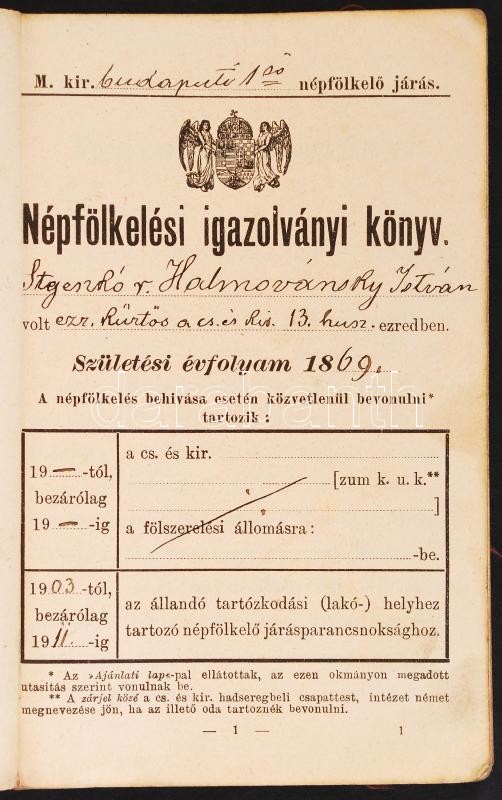 Leírás: 1903 Honvéd Népfölkelési Igazolvány