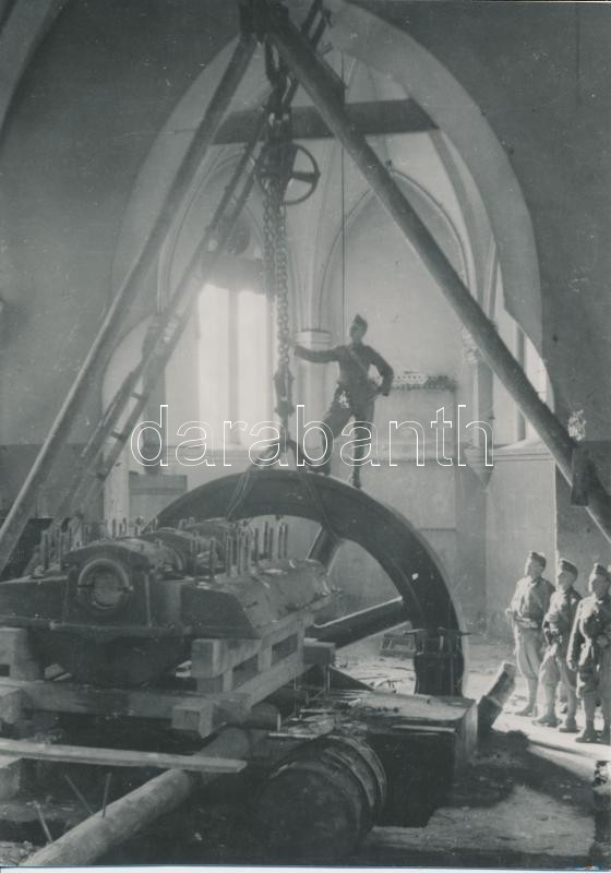 1942 Thöresz Dezső (1902-1963): Gépházban. A 2. magyar hadsereg kivonulása a Don-kanyarhoz. A szerző az oda utat fényképezte, kb. 130-150 eredeti negatív őrzi a katonák harctérre vonulását, ez a kép mai másolat a gyűjteményben található eredeti negatívról, 12x17 cm / military photo, powerhouse