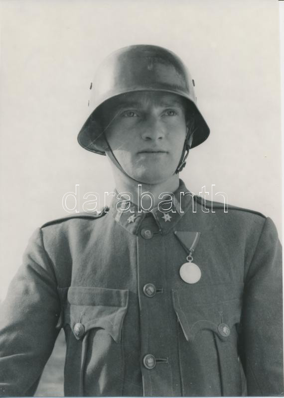 1942 Thöresz Dezső (1902-1963): Kitüntetés után. A 2. magyar hadsereg kivonulása a Don-kanyarhoz. A szerző az oda utat fényképezte, kb. 130-150 eredeti negatív őrzi a katonák harctérre vonulását, ez a kép mai másolat a gyűjteményben található eredeti negatívról, 12x17 cm / military photo, soldier