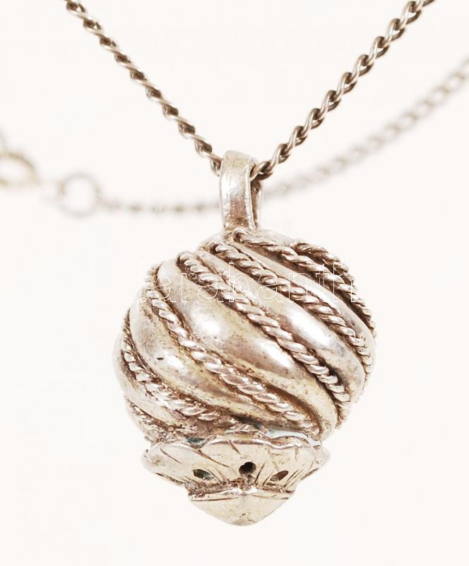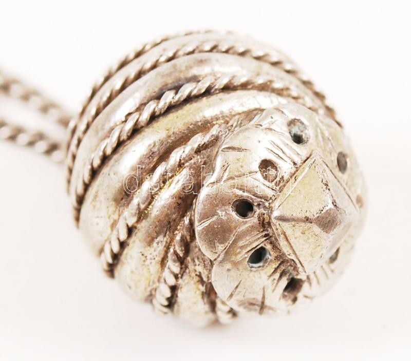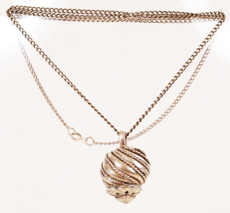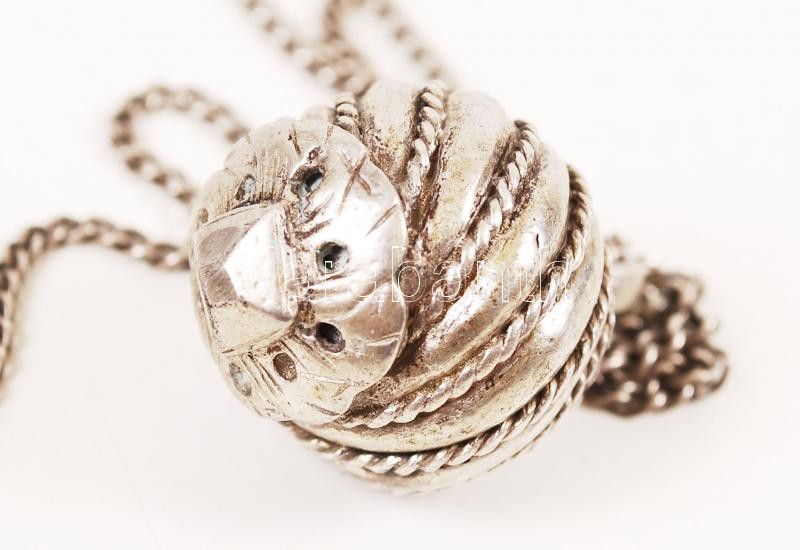 Leírás: Ezüst (Ag.) pitykegomb, ezüst lánccal, h:72 cm, nettó: 19 g