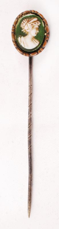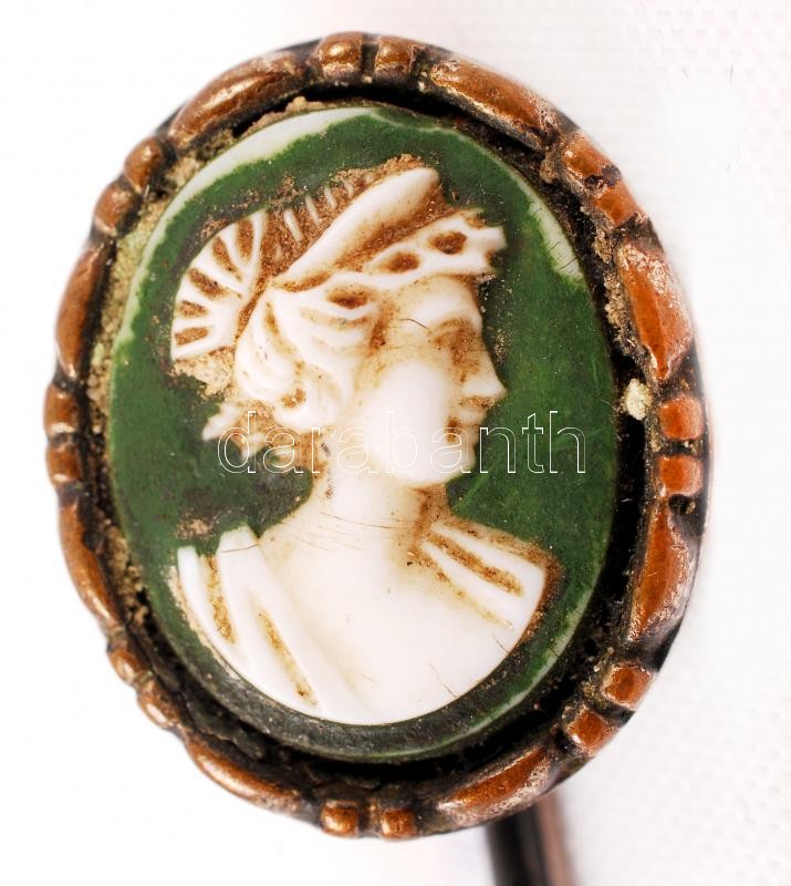 Leírás: XX. sz. eleje: kámeával díszített ezűst melltű / Silver clip with camea