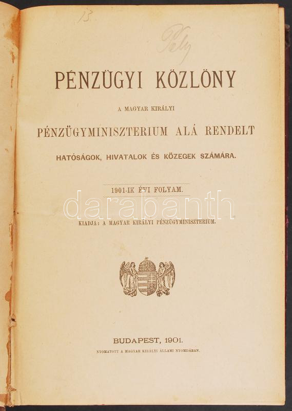 1901 Bp., Pénzügyi Közlöny, A Magyar Királyi Pénzügyminisztérium alá r... https://www.darabanth.com/hu/208-Gyorsarveres/208.0/Festmeny-mutargy-papirregiseg-egyeb/Nyomtatvanyok~30012/1901-Bp-Penzugyi-Kozlony-A-Magyar-Kiralyi-Penzugyminiszterium-ala-rendelt-hatosagok-h~II852882