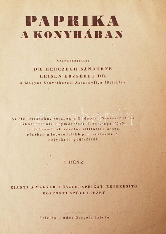 Dr. Herczegh Sándorné-Dr. Leisen Erzsébet(szerk.): Paprika a konyhában... https://www.darabanth.com/hu/208-Gyorsarveres/208.0/Festmeny-mutargy-papirregiseg-egyeb/Nyomtatvanyok~30012/Dr-Herczegh-Sandorne-Dr-Leisen-Erzsebetszerk-Paprika-a-konyhaban-I-resz-31p~II846732