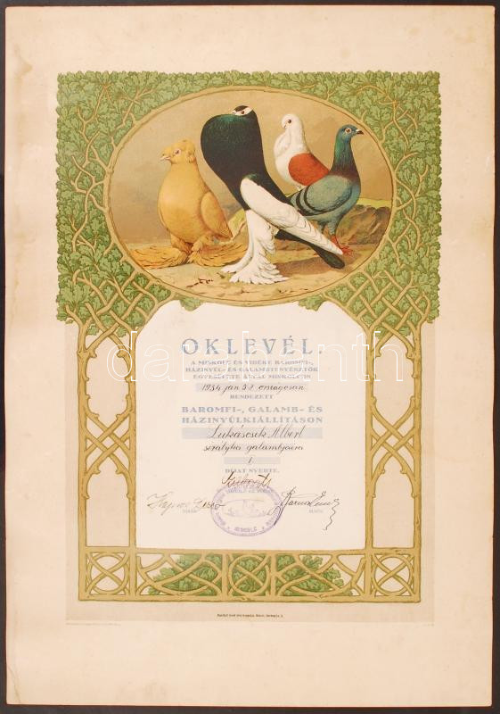 1934 Miskolc és vidéke, baromfi, házinyúl és galamb kiállítás litho ga... https://www.darabanth.com/hu/208-Gyorsarveres/208.0/Festmeny-mutargy-papirregiseg-egyeb/Okmanyok~30026/1934-Miskolc-es-videke-baromfi-hazinyul-es-galamb-kiallitas-litho-galambasz-oklevel-szC3~II852492